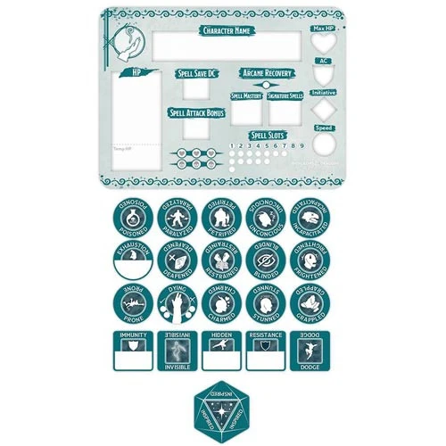 The combat tile provides a place for you to keep a running total of constantly changing statistics like character health and resources, all without dirtying your character sheet with eraser marks.