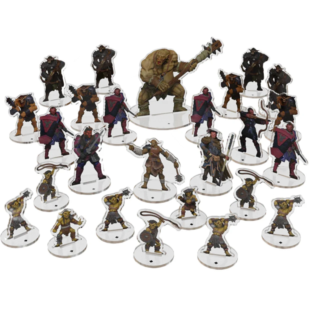 These acrylic 2D minis are an inexpensive way to gain a huge assortment of miniatures. Perfect for new adventurers.