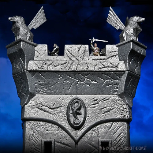 Based on the famous and formidable wondrous magic item, this tower is sized to rest easily on a shelf or at the game table, where it may be employed as more than a sturdy piece of unassailable decor – it may also serve as a dice tower. Also included is the item’s magically compact (1-in. cube) form – ideally sized to fit in an adventurer’s belt pouch, any player’s dice bag, or on a display shelf alongside its “full-sized” counterpart.
