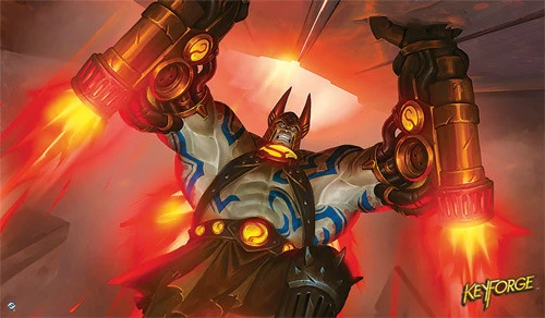 Whether you are playing in a high-caliber tournament or around the kitchen table, this high-quality rubber-based playmat presents your cards in stunning fashion with vibrant art from the world’s first Unique Deck Game. This 24″ x 14″ mat provides the perfect play surface to protect your cards from stains and spills, keeping the focus on your adventures in the Crucible. Displaying a vibrant art piece that embraces the high-spirited, fiery energy of Brobnar to help you embrace your House pride, this mat keeps your battles both organized and immersive.