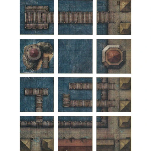 Suitable for experienced GMs and novices alike, this product fits perfectly into any Game Master’s arsenal. Wet, dry, and permanent markers erase from the tiles! These double-sided dungeon tiles come in convenient packaging for easy storage. Add some depth to your urban waterfront!