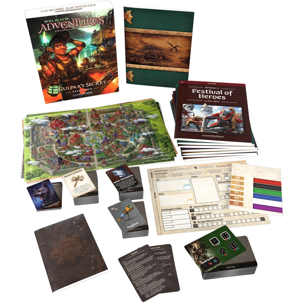 Gulpax’s Secret requires the Roll Player Adventures base game to play. Embark on a heroic journey with your hero! Pick from one of eighteen pre-generated characters or a host of additional characters – either from thirty-six pre-generated characters from Adventures or any completed character from Roll Player.