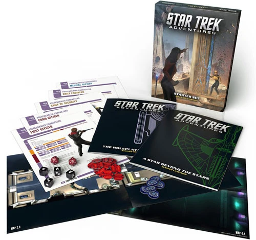 A starter set with everything you need for roleplaying in the Star Trek Galaxy! Star Trek Adventures takes you to the final frontier of the Galaxy, where new discoveries await keen explorers. Your duties may take you to the edges of known space, or to Federation colonies in need, to the borders of neighboring galactic powers, or into the eye of interstellar phenomena. Your ship and your crew epitomize the best Starfleet and the United Federation of Planets has to offer, and you are needed more than ever.
