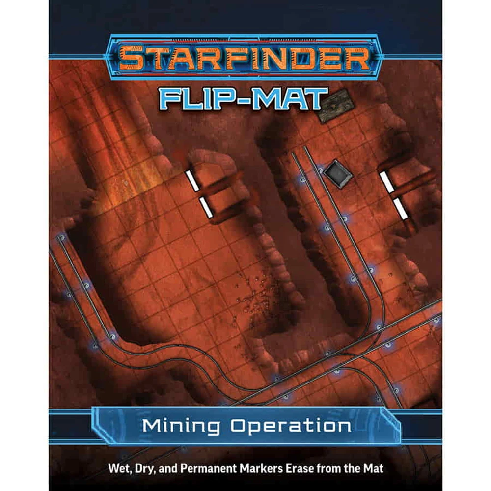 Look to the stars and say ‘mine’. Whether a critical infrastructure site for an evil mega-corp or a long-abandoned asteroid dig with a hidden secret beneath, there’s always something worth discovering at the bottom of a mine. This double-sided map features a large surface dig site on a barren landscape with elevators leading below the surface and into the mines. The second side features the mine interior, with shafts and corridors leading off and connecting back to the other map side via the same elevators. Starfinder Flip-Mats present ready-to-use science-fantasy set pieces for the busy Game Master. With Starfinder Flip-Mat: Mining Operation, you’ll dig up all sorts of adventures!