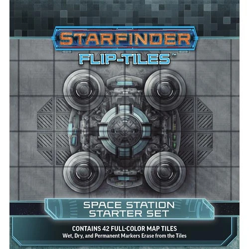 Suitable for experienced GMs and novices alike, this product fits perfectly into any Game Master’s arsenal. Wet, dry, and permanent markers erase from the tiles! These double-sided space station tiles come in convenient packaging for easy storage.