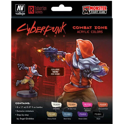 The Combat Zone paint set contains an exclusive miniature of “Nemo” and a dedicated step-by-step painting guide by Ángel Giráldez.