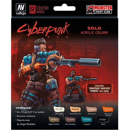 The Solo paint set contains an exclusive miniature of “Jonathan ‘Warlock’ Powers” and a dedicated step-by-step painting guide by Ángel Giráldez.