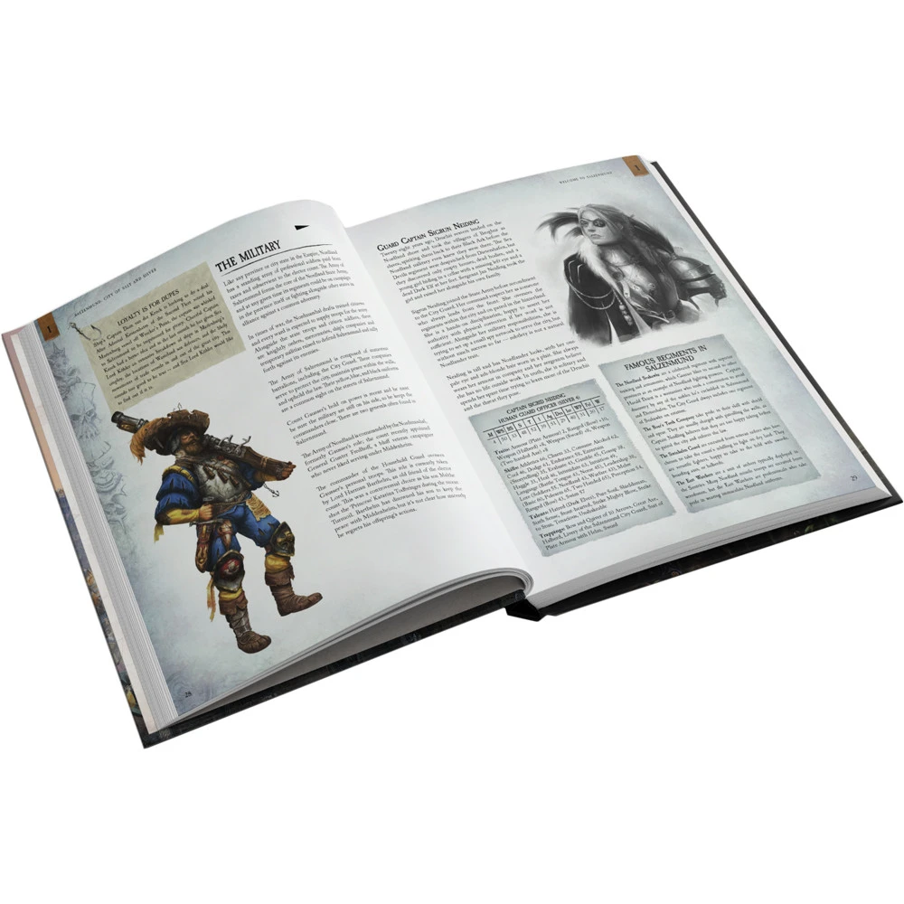 Salzenmund promises opportunity and excitement to adventurous souls. Explorers depart from the city to trade with fur-clad Norscans or brave the wide sea to Lustria. But the ruling Gausser family, newly installed and ambitious, threaten the stability of the Empire. The head of the family talks of a reconquest of the Wasteland and defiance of their old masters in Middenheim. In the taverns by the docks, vicious and crooked folk conspire in smuggling and piracy. Worse still, the honeyed whispers of forbidden cults entice the truly desperate into the worship of Chaos.