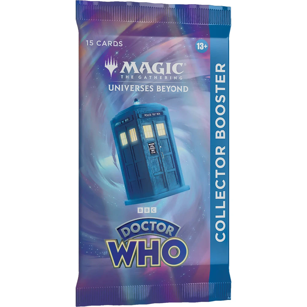 When you crack into one of these Doctor-approved Collector Boosters, you’ll find cards from classic and modern Doctor Who – serving fans the most fantastic moments, characters, and places from throughout the beloved BBC series’ history. Every pack contains cards with special treatments that celebrate what makes the show so iconic, including 2 Showcase TARDIS cards (featuring alternate-art and TARDIS-inspired frames), 6-7 Extended-Art cards (frameless cards that show off a card’s artwork in its full glory), tons of Rare cards, and more shiny foil cards than you can shake a sonic screwdriver at, including at least 3 of a special foil type – Surge Foil cards.